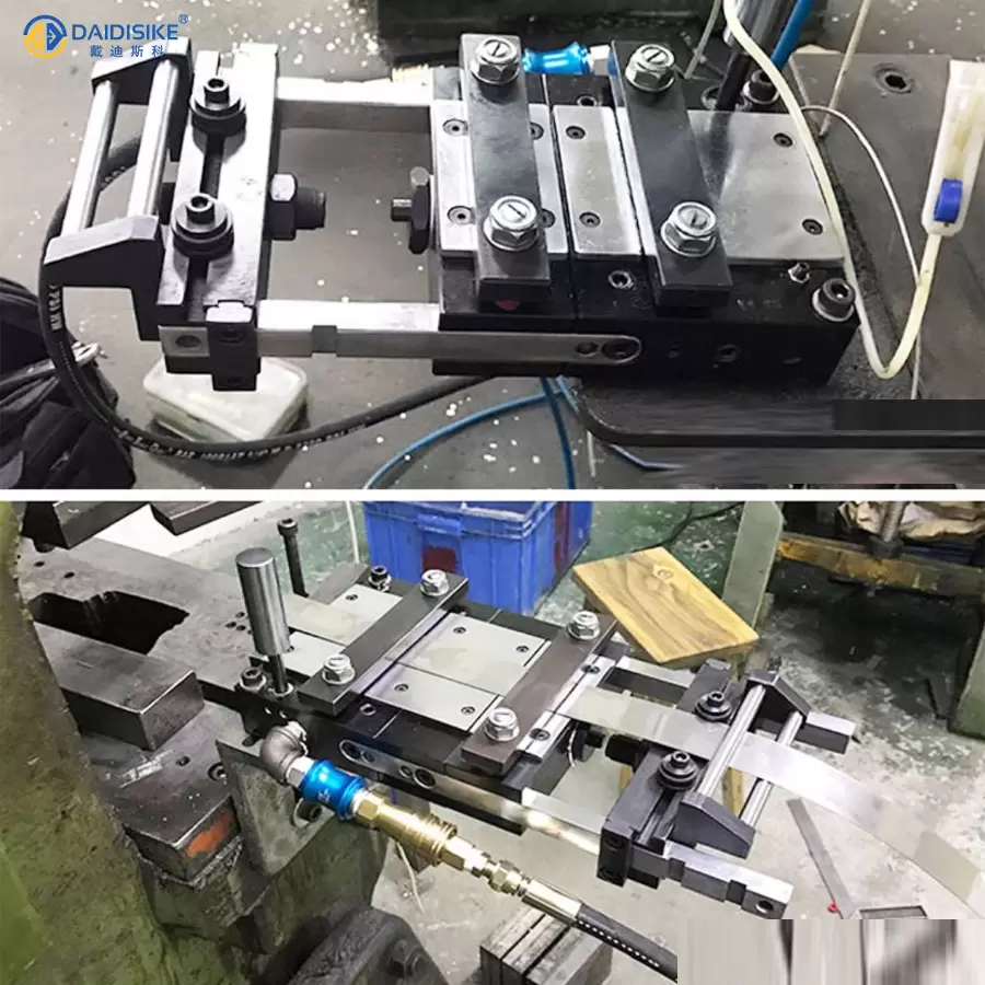 The pneumatic feeder adopts a high-strength alloy steel guide rail and wear-resistant slider structure, coupled with precision-ground bearings and surface hardening treatment, capable of withstanding long-term high-speed reciprocating motion without losing stability. The fixed clamping device provides a clamping force of approximately 64–70kg, while the movable clamp can provide a dynamic clamping force of approximately 120–158kg, ensuring that the sheet material will not slip or shift under high-speed feeding and frequent start-stop conditions. The tensile range is approximately 25–41kg, suitable for most punching machine feeding requirements. The overall weight of the machine is approximately 4.3–16.1kg, with a lightweight design that facilitates installation on the side of the mold or above the punching machine table, occupying no operating space and facilitating future maintenance.