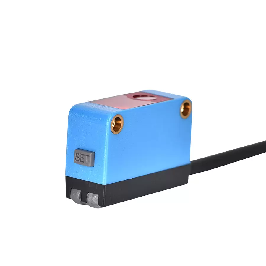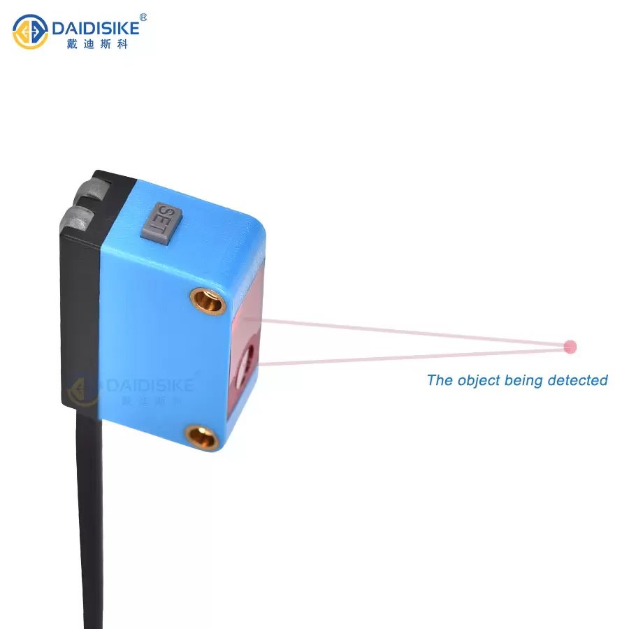 The one click setting method is very simple: aim at the background object or blank area and long press the SET button for about 1 second. The red output indicator light will turn off and the green power light will remain on, indicating that the learning is complete. Afterwards, any workpiece passing between the background and the sensor will be detected, which is particularly suitable for determining the presence or absence of irregular, irregular products and transparent parts.